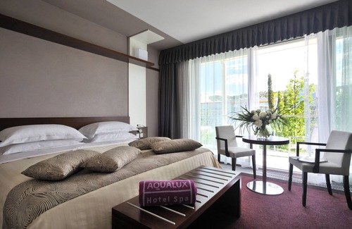 Aqualux Hotel Spa & Suite offers 125 accommodations with minibars and safes. Beds feature premium bedding. 40-inch LCD televisions come with satellite channels. Bathrooms include bathtubs or showers, bathrobes, slippers, and complimentary toiletries.