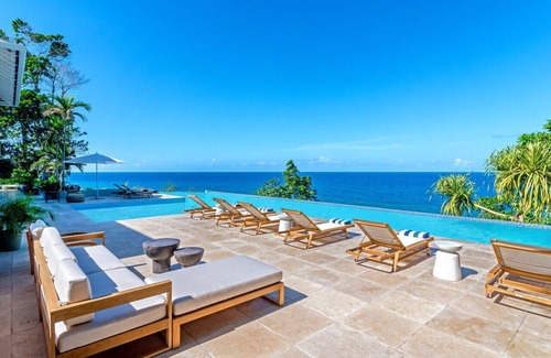 From the pool deck, sixty-nine easy steps take you to the seaside one, built over the clear emerald waters of the Caribbean. Swimming and snorkeling can be enjoyed off your own private white sandy beach in a sheltered cove. You also have an ocean-side thatched roof gazebo, that makes the final panorama even more charming. The beach is well equipped with a shower facility and comfortable deck chairs, that seem to whisper to you ear to come closer, lay down, relax and order a mojito.