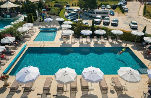 Located in Kranevo, a 2-minute walk from Kranevo Beach, Aquamarine - Beach & SPA Hotel- All inclusive provides accommodations with a seasonal outdoor swimming pool, free private parking, a garden and a terrace. Providing a restaurant, the property also features a bar, as well as a sauna and a hot tub. The property has a 24-hour front desk, airport transportation, luggage storage space and free WiFi throughout the property. Each room is equipped with a private bathroom, while certain rooms include a balcony and others also offer a sea view. The hotel offers 4-star accommodations with a spa center and playground. Baltata is 2.3 miles from Aquamarine - Beach & SPA Hotel- All inclusive, while Aqua Park Albena is 3 miles away. Varna Airport is 20 miles from the property.