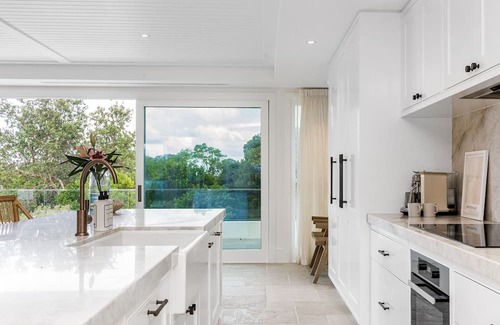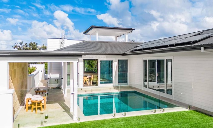Aquarium is a graceful and luxurious house located metres from the beach in the Northern Rivers town of Pottsville, suitable for multiple families. A barefoot sandy path through some shrubs is the only thing separating the house from kilometres of white sand beach – leave the city behind and fall asleep listening to the sound of waves.