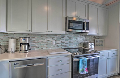 KITCHEN: Fully equipped, stainless steel appliances, dishware/flatware, pots/pans, blender, coffee maker, toaster, spices, paper towels.
