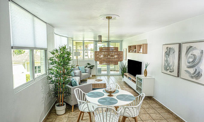 The property is in northwest Puerto Rico, where it's quiet and safe with light traffic. Most residents speak both Spanish and English. You'll find restaurants and bars nearby, but renting a car is recommended for exploring the island—it's small and easy to get around.