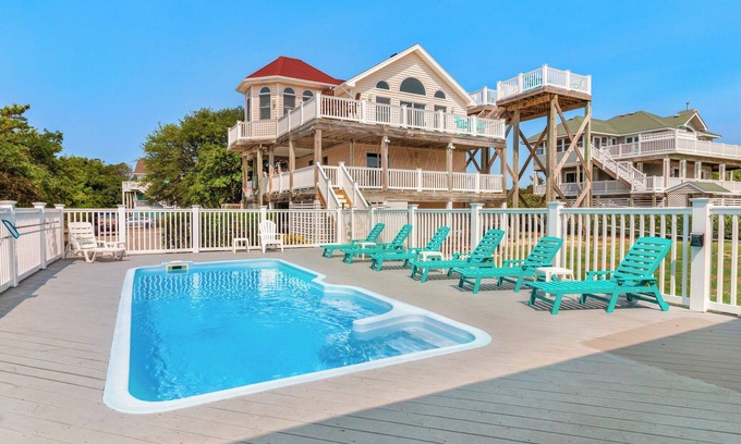 Ar Lan Y Mor*Beach 1000ft* Corolla *2 Dogs Ok*Pool has 5 Bedrooms , 4 Bathrooms, and max occupancy of 14 people. The minimum rental for this property is 1 nights, but this can change depending on the season you plan on staying. Previous guests have given good rated it, and VRBO labeled it a top-rated House because of the excellent services rendered by the owner or manager of this House, and has consistently provided great experiences for their guests. Most families or guests that use it recommend it to their friends and some of them are repeat guests. House has a friendly neighborhood, and the Whalehead Beach has interesting places to visit. If you want to learn more about the House in Whalehead Beach, such as places to visit and things to do nearby, you can check below to learn more.