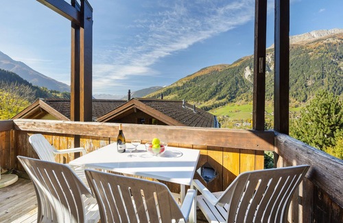Cosy, rustic holiday village "Aragon", 1'200 m a.s.l.. 21 houses in the resort. On the outskirts, 500 m from the centre of Ernen, in a quiet, sunny position on a slope, 4 km from the skiing area. For shared use: table tennis, barbecue, fireplace, children's playground. In the house: storage room for bicycles, storage room for skis, central heating system, washing machine, tumble dryer (for shared use, extra). Motor access to the grounds (mountain road). In Winter: please take snow chains, 4x4 car recommended in winter. Communal covered parking. Shop 500 m, bus stop 100 m. Golf course (18 hole) 25 km, tennis 4 km, indoor tennis centre 4 km, sports centre 4 km, gondola lift 4 km, skisport facilities 4 km, ski rental 4 km, ski bus stop 100 m, ski school 4 km, cross country ski track 4 km. Well-known ski regions can easily be reached: Aletsch Arena 4 km, Bellwald 12 km. Hiking paths: Landschaftspark Binntal 10 km. The new hanging bridge connects the two hiking estates of Ernen and Bellwald and provides access to the national cycle route nr. 1 (road of the Rhone glacier lake to Lake Geneva). Between Ernen and Mühlebach, the bridge provides direct access to the Matterhorn Gotthard train.