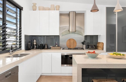 Landscaped gardens lead to a spectacular backyard complete with a pool, deck chairs, Weber BBQ and a sitting area for drinks and entertaining. The kitchen/dining area flows through to the upper entertaining deck with both lounging and dining options. The back gate in the garden leads to a short cut - taking you straight to the beach!