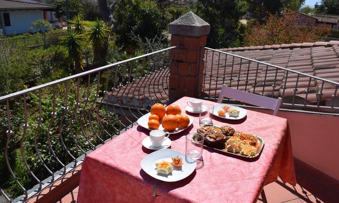 The apartment, in typical Sardinian style, is on the first floor of a house with garden. It's composed of two bedrooms, living room, bathroom, kitchen, and a terrasse where you can eat your meals surrounded by the beautiful nature. There is a private parking and a big barbecue in the garden.