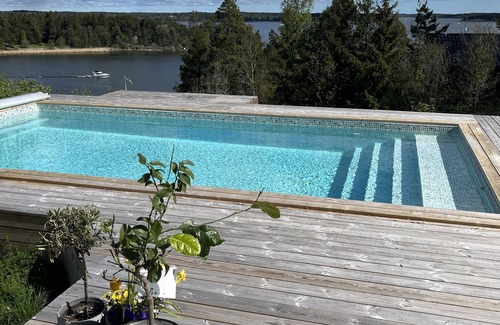 Warm welcome to our archepelagio villa with a lovely garden, pool, guesthouse and fantastic view. You can be a larger family or two smaller families and enjoy lazy days by the pool or sea, or active days in the wonderful nature at Resarö snd Vaxholm!