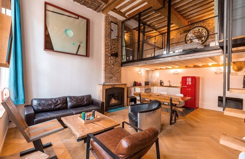 Architect-designed 3-bedroom duplex is located in Old Lille. Architect-designed 3-bedroom duplex provides accommodation, featuring Fireplace/Heating, Child Friendly, Internet, among other amenities. This Apartment features Fireplace/Heating, Child Friendly, Internet, to make your stay a comfortable one.