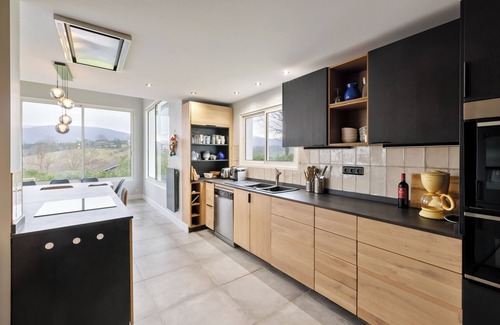 From the front door, an "inside-outside" impression thanks to the large bay windows that seem to bring the mountain within reach and offer a unique view of the Rhune!