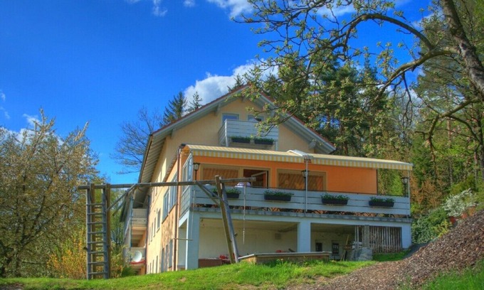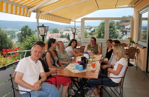We invite you to come to our location called 'Kalvarienberg' it is situated on a little hill close to the city Regen (10 000) inhabitants . From there you have a beautiful view to the castle ruine 'Weissenstein' surrounded from the typical landscape of the 'Bavarian Forest' Directly from our house you can start your hiking tour or cross country skiing.We have 10 individually equipped guest rooms with beds for 15, 25 to 35 persons. Our house has a large garden with old trees in it.