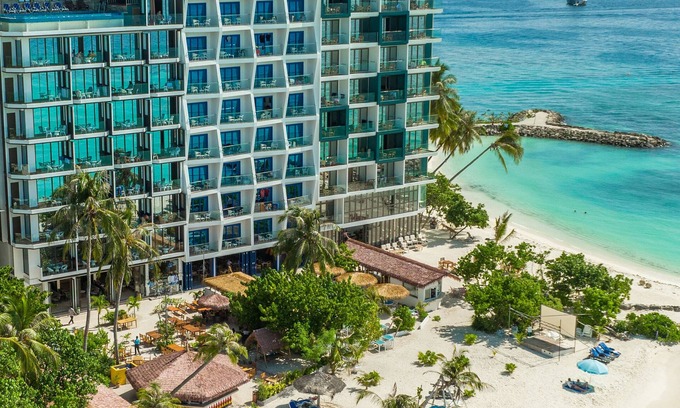 Recreational amenities at the hotel include a private beach and an indoor pool.