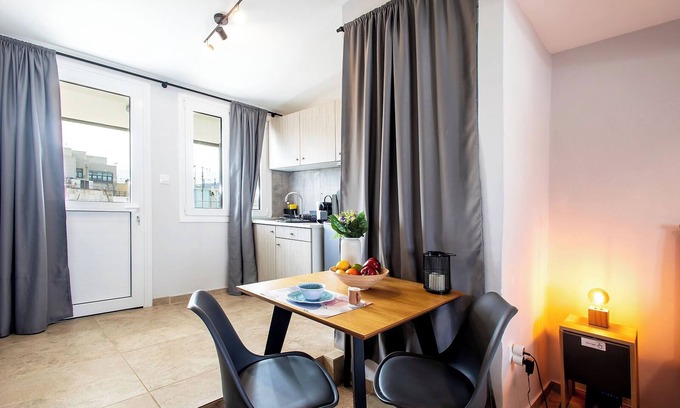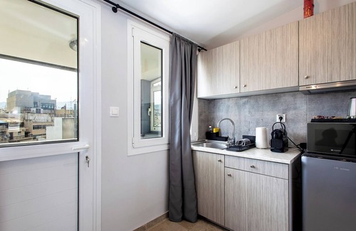 Discover the cozy comfort of our 7th-floor apartment, fully equipped for a delightful stay. With air conditioning, a kitchen ready for your culinary touches, a 50" flat-screen TV with Netfix installed for entertainment, and a private bathroom with essentials, every detail caters to your relaxation. Unwind in the inviting seating area or on the balcony, enjoying sweeping city views. This apartment is your warm, welcoming retreat in the vibrant heart of Athens.
