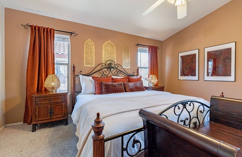 Nestled in a serene neighborhood, our welcoming abode offers a perfect blend of comfort and convenience. Revel in leisure with our pristine pool, savor the nearby attractions like lush golf courses, thrilling hot air balloon rides, and breathtaking mountain views. Indulge in a variety of local dining options to satisfy any palate. Inside, find a haven of relaxation with plush bedrooms, a modern kitchen, and a cozy living area, all awaiting your arrival.