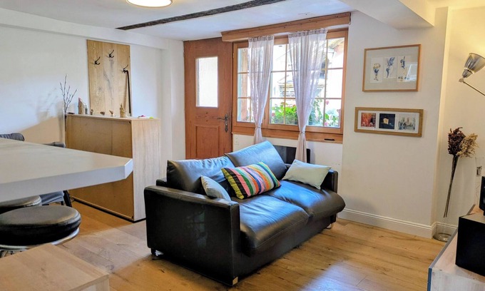 70 m2. More information by the provider: Beautiful 3.5 room apartment (70m2) on the ground floor with a garden. The apartment is located in a chalet with two apartments. Living room with TV, sofa bed (for 2 people), table, radio. Kitchen with oven, coffee machine and refrigerator. One bedroom with a double bed (140cm), one bedroom without a window (with fresh air supply) with a double bed (160cm). In total, there are two bedrooms, each with a double bed plus a sofa bed for 2 people. One bathroom with bathtub with shower, WC and washing machine. Garden with lounge and dining table. Parking available. About 5 minutes' walk to Frutigen train station. Approximately 20 minutes by car to Adelboden and Kandersteg. Upon request: Accommodation for up to 6 people possible (additional cost: 50 Fr. per person + tourist tax). Payment on site.