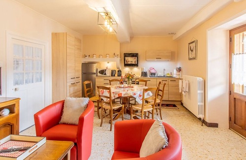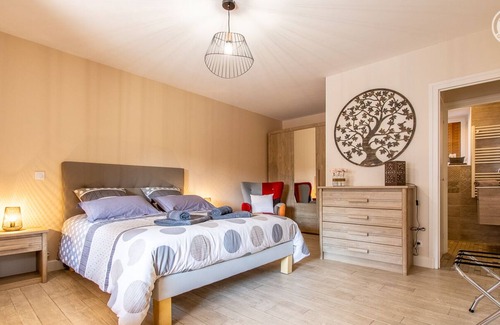 Marie-Laure & Michel welcome you to a lovely authentic traditional 19th century residence, carefully restored & steeped in history (former "farmhouse" & Marie-Laure's childhood home), quietly located on the edge of an alley and peaceful little square, in the heart of a charming little wine-growing village in the Haut Mâconnais, a stone's throw from the vines which adjoin and dominate the village "in balcony". Nestled at the foot of a wooded hill, in the hollow of a magnificent unspoiled rural valley alternating between meadows, vineyards, ponds, hedgerows & forests, within a protected area classified as "Natura 2000", the picturesque town of Bissy-sous- Uxelles (one of the smallest towns in Saône-et-Loire!) has a very typical architectural heritage (typical houses with "Mâconnaise galleries", houses of character, very rare oval-shaped 19th century polygonal washhouse with impluvium, late 18th century church…) and offers a small play area for children. Enchanting setting and site, totally relaxing & restful. Very comfortable cottage. Warm country character with contemporary accents. Zen, soft & cozy atmosphere. Exotic atmosphere of an old country house (fireplace mantel, glass door, original beams). Very charming. Complete quality equipment. Sheltered balcony-terrace completed by a pleasant mini garden, a large courtyard and a spacious summer kitchen on one level (ping-pong table & bicycles available). Beautiful unobstructed view of the village. Composition: Semi-detached village house adjoining the owners' secondary residence (total independence). Oil fired central heating. Wireless. Ground floor: summer kitchen. 1st floor: living room-kitchen-lounge, 3 bedrooms, 2 of which are adjoining (double bed 160x200cm / 2 single beds 90x190cm / 1 single bed 90x190cm), shower room (shower), separate wc. Sheltered balcony-terrace + mini garden + courtyard + garage (1 space) + bike room + private parking. Amenities 8 km. TGV stations: Mâcon Loché 41 km, Creusot 36 km.
