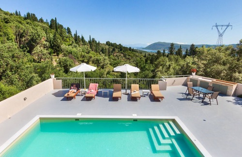A villa with private pool, mountain and sea views. Barbeque by the pool and everything a kitchen needs. Parking onsite, 5 minutes from the main by the sea road, 10-15 minutes from the city of Lefkada. It is the best place for families or friends. Peaceful but at the same time so close to everything. Its is brand new, as this is the first year of operation.