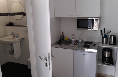 ARRIVE & FEEL GOOD! Our accommodation, which was built in 2019 and opened in January 2020, leaves nothing to be desired. We make your stay as pleasant as possible. As an alternative to the hotel, we offer an exclusive apartment in a modern living environment for short and long-term guests. Sulzbach am Main is a market in the Lower Franconian district of Miltenberg, located about 7 km south of Aschaffenburg on the western edge of the Spessart and with the exception of the right-main part of the Niedernberger district directly on the Main. In our 25 - 30 sqm "Apartment Modern" no wishes remain unfulfilled! The bright and friendly apartment is modern and attractively furnished. Up to three guests, plus a toddler up to two years old, can arrive. A restful sleep is guaranteed by the cozy box spring bed and a comfortable sofa bed! A baby bed is also available if required. Bulky luggage and clothes can be stowed in the spacious closet. There is also a fully equipped kitchenette in the apartment (microwave, oven, hot plates, coffee machine, refrigerator with freezer, kitchen utensils etc.) as well as a dining area. A 40 "LED satellite TV and free WiFi are available to our guests. In our own bathroom our guests will find a toilet, a sink and a shower.