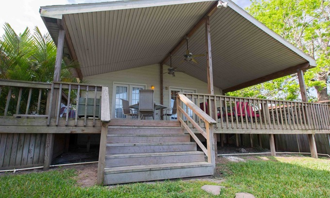 4 bedroom, 3 full bathroom well kept waterfront home on the Arroyo Colorado. Large covered outside porch with tables and chairs, gazeebo, and dock with "stadium" fishing lights. Excellent night fishing off the dock. High speed WIFI, 55'' HD TV with Dish Network and Netflix, full kitchen, charcoal BBQ, washer/dryer, central AC. Two car garage now available to all renters for easy loading/unloading and additional trailer parking.