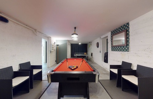 - On the ground floor, you will find a cinema room (NETFLIX) as well as a 50m2 games room with different equipment: Bonzini table football, pool table, darts and board games, etc..