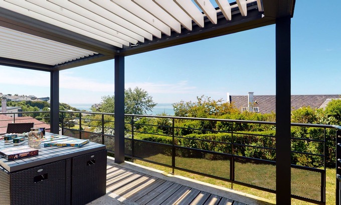 You will be seduced by the art deco style of this modern house and its crackling fireplace, facing the sea.