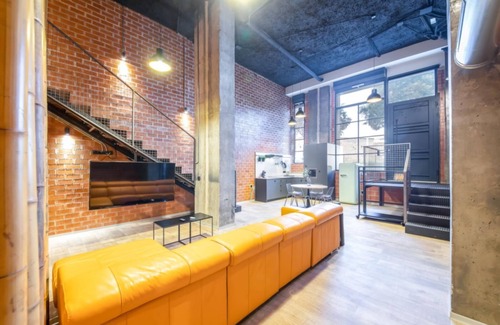 You will think you are in the heart of New York Soho at the beginning of the '50s. The Loft has design and spaces in the purest industrial style that will invite you to a totally atypical stay, outside the standards of rental homes. At the same time you will feel the warmth of home, since the apartment has all the services and is equipped with everything you need to feel at home. It has a total area of 110 m² distributed over two floors. On the lower floor is the main room, made up of the living room and the open kitchen concept, creating a spacious and clear space so that you do not miss any detail. A wall formed by huge bamboo canes separates the living room from a double room with a bathroom. From the access floor, a metal platform will take you to the upper floor, where you will find a second double room with a private bathroom.