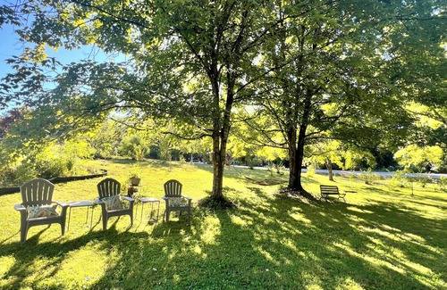 Your own outdoor patio overlooking the creek with private entry to a charming apartment with ample parking and easy level walk from parking pad to patio. Unique and colorful, this retreat and it's original art has inspired the many artists, musicians, authors and nature-lovers who have stayed here. Enjoy the park like setting 12 min. from Airport, 15 min. from Univ of TN, 40 min. from Smoky Mountains. Your home away from home is lovingly maintained and scrupulously cleaned