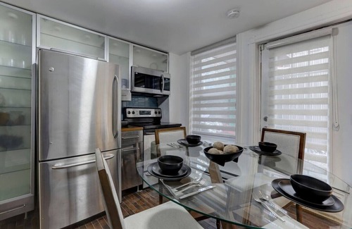 Immerse yourself in the vibrant energy of Montreal`s Gay Village with our chic 3-bedroom retreat, just steps from Frontenac metro. Enjoy modern comforts, including stylish décor, a fully equipped kitchen, and a private outdoor space perfect for unwinding. Discover local gems—from eclectic shops to lively nightlife—and explore the city with ease thanks to convenient public transportation.
