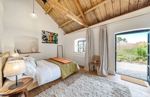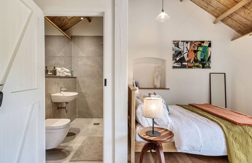 Arthouse is a newly refurbished barn conversion, nestled in the hamlet of Kingston Russell near Dorchester, and is surrounded by beautiful countryside with wild flowers and wildlife bringing your senses to life. This unique holiday retreat is filled with colourful, contemporary and abstract ceramic sculptures, paintings and prints using different techniques and mediums, all lovingly created by the property owners. Carefully curated mid-century modern furnishings compliment the space which enjoys high ceilings, exposed beams and an open floorplan.