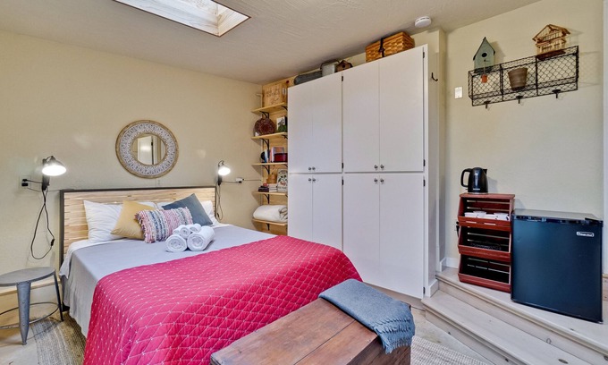 Our space is cozy yet private. A great space for 1-2 guests that has the comforts you need to make your stay an excellent one. Private entrance, small kitchenette, private bathroom, and skylights all delight our space. 20+ years ago it was a ceramics artist quarters that the floors still reflect till this day. Unleash your inner creative side in our space.