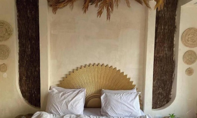 Welcome to a one-of-a-kind retreat just 5 minutes from the Pyramids! This studio offers panoramic Pyramid views and a private hot tub. The space features Pharaonic-inspired design, with unique decor and architectural details that create a historic, cozy ambiance. Enjoy a queen bed, dining area, kitchenette, and private bathroom. Guests also have access to the shared rooftop with stunning views for an unforgettable stay.