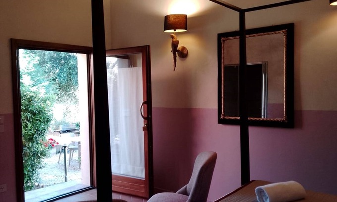 The splendid Arunte room, 35 m2 in size, is located on the ground floor with independent access and shared garden. It is equipped with air conditioning, wifi inside and outside, and smart TV.