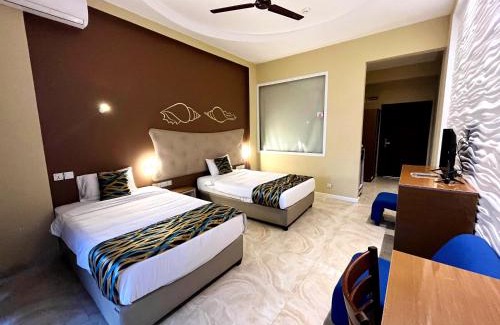 Located in Wadduwa, a few steps from Wadduwa Beach, Aryana Queen Beach Resort has accommodations with an outdoor swimming pool, free private parking, a garden and a private beach area. This 4-star hotel offers room service, a 24-hour front desk and free WiFi. The hotel has a terrace and sea views, and guests can enjoy a meal at the restaurant or a drink at the bar. At the hotel rooms come with air conditioning, a seating area, a flat-screen TV with cable channels, a safety deposit box and a private bathroom with a shower, free toiletries and a hairdryer. Each room includes an electric tea pot, while some rooms include a balcony and others also feature pool views. The rooms have a desk. Guests at Aryana Queen Beach Resort can enjoy a continental breakfast. Guests can use the business center or relax in the snack bar. Bambalapitiya Railway Station is 19 miles from the accommodation, while Khan Clock Tower is 22 miles from the property.