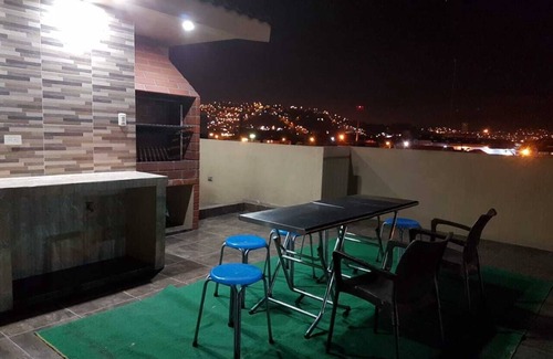 They will feel at home. It is comfortable to be with family and friends. It has a terrace with a beautiful view and barbecue for barbecues. There is a space to exercise with machines and a social TV room. The kitchen is equipped with all the implements ready to use. All bedrooms have A / C. There are soccer fields near the house. At 5min are the cc. city mall and the cc. roundabout. 15 min. From the airport.
