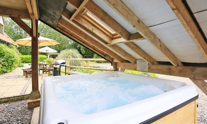 A charming timber framed traditional cottage in the heart of Suffolk, this property boasts a lovely garden, high quality furnishings and its own hot-tub. Surrounded by Suffolk's countryside and within easy reach of its beaches and unique towns, Ash has much to offer any holiday makers. Size: Sleeps up to 5, 3 bedrooms. Nearest beach: Less than 12 miles. Access: Car advised. Wheelchair access: No. Nearest amenities: Less than 4 miles. Pets: Two dogs welcome (not puppies) and must not be left unattended. Smoking: Not allowed at this property. Luxuries: DVD player, Woodburner. General: Oil fired central heating, TV. Private Hot Tub available until 10.00 pm. Standard: Kettle, Toaster, Iron. Utilities: Electric cooker, Microwave, Fridge, Dishwasher. Shared washing machine and freezer. Rooms: 3 Bedrooms (One with En-suite), 1 Bathroom, 1 Living room, 1 Kitchen, 1 Dining room, shared Utilitiy area. Beds: Single bed (2), Double beds (2). Other: Lead person in party must be 21 or over. Children must be supervised around pond at all times.Lawn games provided. Cycle hire available. Outdoors: Paved terrace with furniture and pond, Gas barbecue, Hot-tub in all weather oak barn. Access: Ample parking.