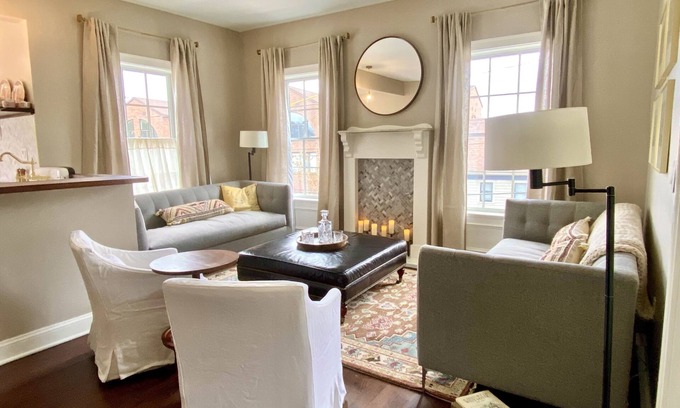 Car not necessary from this spot in the heart of Mystic - a Foodie getaway.The apartment is above James Beard-nominated chef and Esquire's "Best Bars" cocktail lounge & restaurant. The renowned Oyster Club & Treehouse are next door, as well as the acclaimed Sift Bakery.