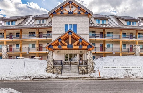 Enjoy our like-new home at the Golden Poles Chalet in Government Camp. Our unit sleeps 8, has two underground parking spaces with an elevator for easy loading/unloading of gear and luggage, in-unit laundry, heated outdoor pool (open during summer and off-season weekends; closed during extreme storms), a well-appointed kitchen with huge peninsula, gas fireplace and VIEWS! Extra comfy beds with a pull-out murphy bed in the great room. Lounge from our large covered private outdoor patio with gas BBQ or make s'mores at the community fire pit in the summer. In the winter, walk to the lifts at Ski Bowl or cozy up by the fire with a book and watch the snow fall. Waxing room open in the garage. **pool temporarily closed until snow melts**