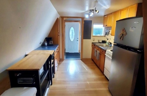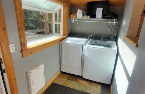 This A-frame style cabin has 2 bedrooms and 2 full bathrooms. The primary suite is located inside the Main cabin, and our second bedroom is located in our Bonus Cabin! There is a small sleeping loft in our living room with ladder access. We provide a twin size air mattress for our sweet little loft space, which a great place to nap, read, or get some work done on your laptop.