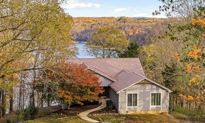 **Home is NOT walking distance to lake** Discover the NEW! Aspen Lodge, a stunning vacation home nestled in the picturesque Pates Foard Marina area, overlooking the serene Center Hill Lake. This spacious retreat is perfect for families or groups, accommodating up to 13 guests with its 5 beautifully appointed bedrooms and 2.5 bathrooms, ensuring comfort and privacy for everyone.