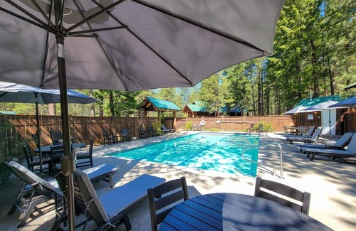 Situated right on the trails in Mazama, enjoy easy access to cross-country skiing, hiking, and mountain biking. Return to the inn to take advantage of amenities like WiFi, a pool, hot tub, and a clubhouse with a kitchen for guest use and a BBQ on the deck. Relax in the lodge's great room by the open fireplace or unwind on the lawn in the summer months.