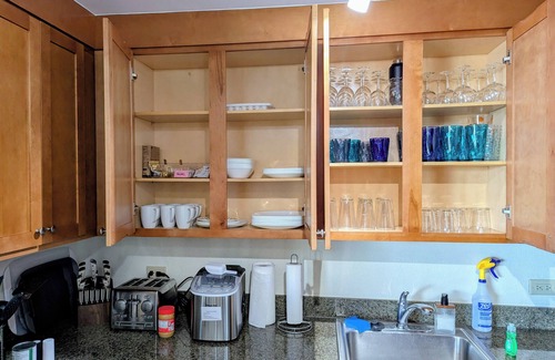 All the Kitchen Amenities you will need including a coffee pot, toaster, blender, crockpot, knife set, and all the silver, cooking utensils, and dishes are available in the unit.