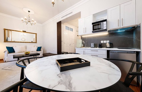 Its soothing atmosphere and attention to detail. From its curated furnishings to the charming balcony views and elegant touches, Asty 2 feels both welcoming and refined. The apartment also includes a dedicated workspace, fast Wi-Fi, and access to a shared laundry area on the rooftop—a beautifully maintained space accessible via a secure spiral staircase.