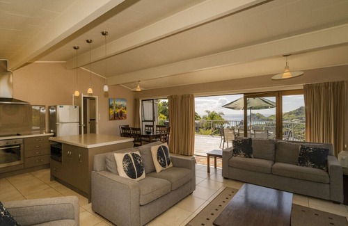 This comfortable and spacious holiday home enjoys a peaceful bush setting with stunning views! With four bedrooms plus a separate sleepout, escape to Cathedral Cove with your whole group - furry friends included!