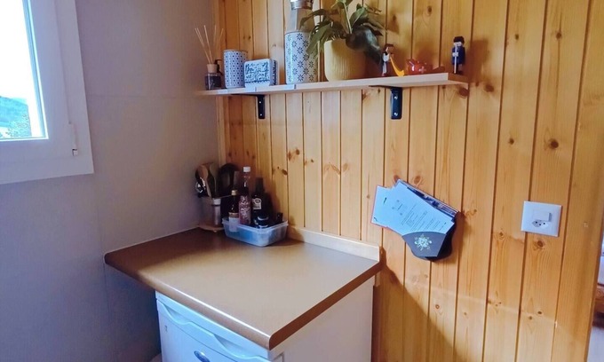 Book this lovely home with a small kitchen, shower room. It is equipped to welcome you with your friends or family up to 4 adults (160 x 200 cm bed, 2 armchairs/beds 80 x 200 cm, a crib).