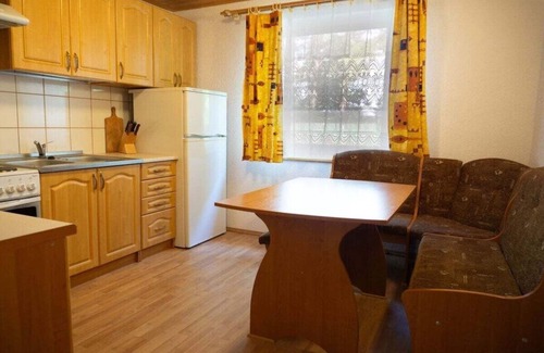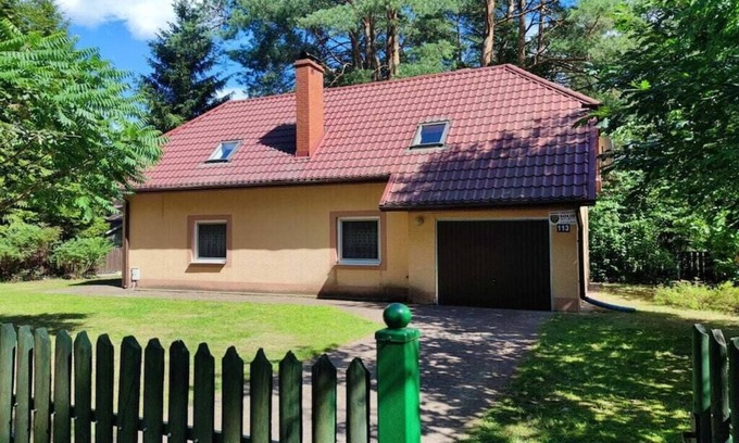 Beautiful nature, rustic furnishings, and a special feel-good atmosphere: You'll find all of this when you visit our holiday home – just 50 meters from Lake Żdrożno! Our 110 square meter holiday home offers everything you need for a relaxing stay. It sleeps five in two bedrooms and has two bathrooms. The heart of our cozy holiday home, however, is the living room. The rustic furnishings with a sofa and armchairs, a TV, and especially the fireplace, warmly invite you to visit. Our fully equipped, country-style kitchen with its cozy seating area is no less impressive. The wood paneling throughout the holiday home further emphasizes the coziness. The holiday home also has a private, fenced property. This also provides a private retreat outside (approximately 500 square meters) for breakfast under the covered patio, relaxing or reading, or even for an evening barbecue. The highlight, however, is the fully equipped rowboat that comes with the holiday home. This allows you to explore the 250-hectare Lake Zdrozno. Of course, you can also simply use the jetty to jump directly into the water.