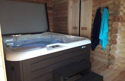 A Jacuzzi is located in a chalet, just next to the cottages, which allows you to enjoy all year round. For an additional fee, guests can relax for 1 hour and 1 hour with hydromassage and massage jets for your back. Children are not admitted for reasons of safety and health.