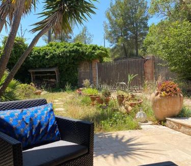 Featuring a garden, Ataraxia en Pr4tdip provides accommodations in Pratdip. This property offers access to a terrace and free private parking. The accommodation features a shared kitchen, luggage storage space, and organizing tours for guests. The air-conditioned chalet consists of 3 bedrooms, a living room, a fully equipped kitchen with a dishwasher and a coffee machine, and 1 bathroom with a bidet and bathrobes. Guests can take in the views of the mountain from the balcony, which also has outdoor furniture. There's also a seating area and a fireplace. The chalet also comes with outdoor fireplace and a picnic area for a day outdoors. PortAventura is 20 miles from the chalet, while Ferrari Land is 20 miles from the property. Reus Airport is 22 miles away.