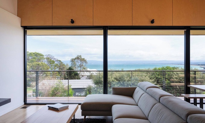 Located close to the Freycinet National Park, this stunning, architecturally designed home “Atelier” captures views of the surrounding Great Oyster Bay from every room. With the town of Coles Bay a 5-minute drive away, a 5 minute walk to Sandpiper beach, plus a 6 minute drive to the National Park, this is the perfect location for guests who want to enjoy world class views, hiking, water sports and mountain biking.