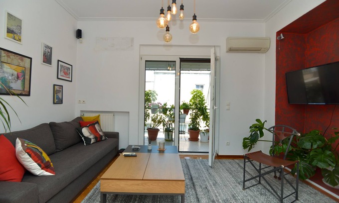 Welcome to the heart of Athens! You are in front of Syntagma square, the central metro, bus and tram station . Ideal for business travellers or for those who want to explore Plaka , Acropolis and historical sites on foot and relax in style. It is a stylish 70 square meters top floor apartment with a lovely balcony. It has air condition, wi-fi and workspace. Beach is only 30 minutes ride by tram or bus.