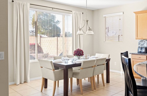 Welcome to your At Home+1 Stay! This spacious 6 Bedroom Goodyear retreat offers comfort and style just minutes from golf, dining, and hiking. This is the PERFECT accommodation for large groups needing mid stay accommodations. Relax in the open living spaces, strike up some intense ping pong & pool matches, or whip up meals in the fully stocked kitchen. Book now for your perfect escape!