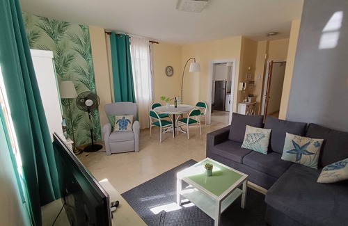 Located in the old area, and center of the city. The terrace, with reserved access to the apartment, ideal for teleworking, is an office with sea views, Wi-Fi (500Mb), heated shower and fridge, so you don't lack for anything.